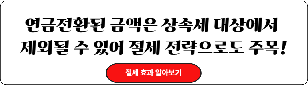 연금으로 전환한 금액은 상속 재산에서 제외될 수 있어 상속세율 부담을 낮출 수 있는 수단으로 주목받고 있습니다. - 유족 수령 금액 확보