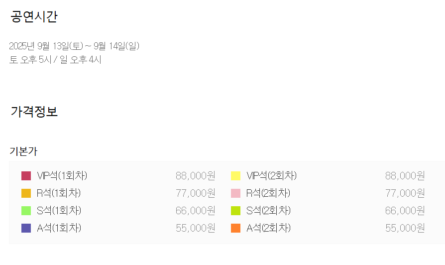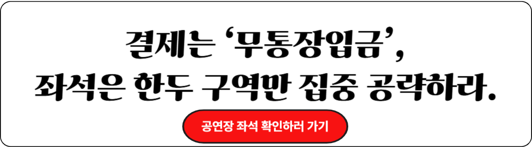 ※ 참고: 2025년 9월 8일(월) 오전 0시부터는 무통장입금 예매가 불가합니다. - 좌석은 한두 구역만 집중 공략