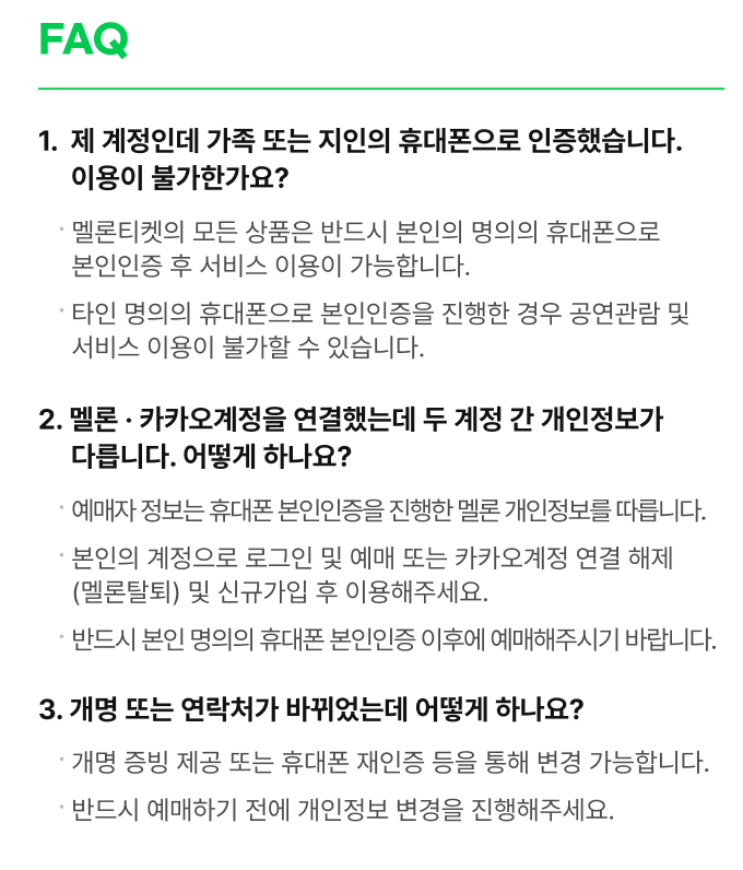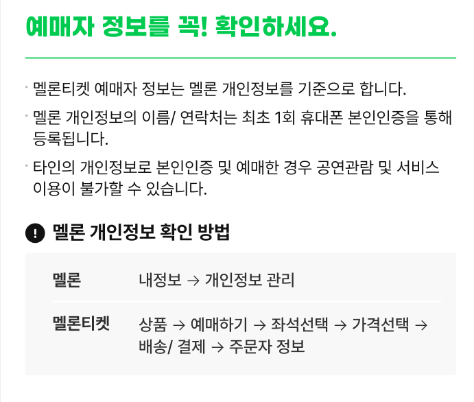 - 멜론티켓 본인인증·배송지·결제정보는 미리 확인
