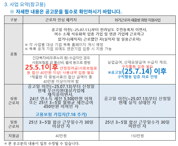2025년 여수시가 고용위기 극복을 위해 실직자와 재직자 모두에게 현금 지원을 시행합니다.