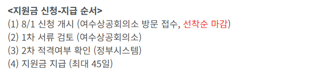 - 지원 명칭: 여수시 고용회복지원금