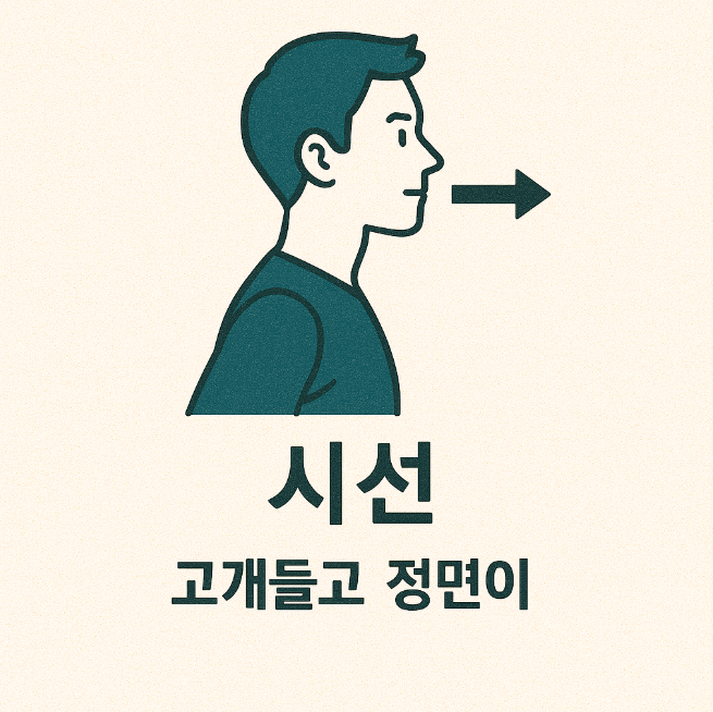 ✅ 올바른 자세: 상체를 자연스럽게 기울임, 눈은 정면을 바라봅니다. 숙이는 자세는 달리기 할때.