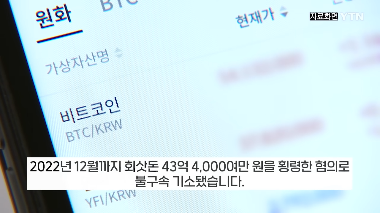 | 2022년 12월까지 | 총 43억 4천여만 원의 회삿돈을 횡령하여 암호화폐에 투자함 |