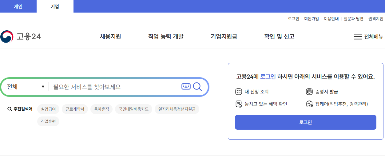 - 고용보험 홈페이지 접속 및 사업주 로그인